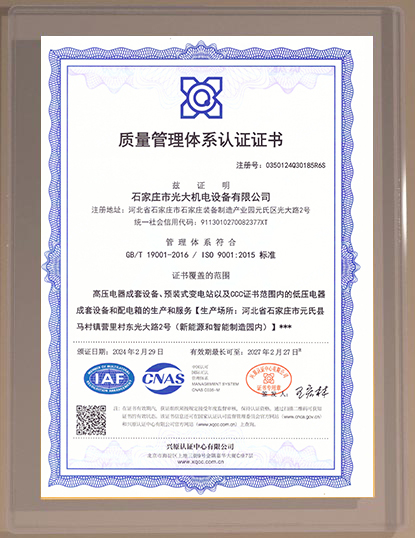 石家莊市光大機(jī)電設(shè)備有限公司位于石家莊市新能源和智能制造園區(qū)光大路2號,緊鄰107國道,交通便利。公司匯聚了一批鈑金、強(qiáng)電、弱電技術(shù)、安裝施工人員,并有河北科技大學(xué)、石家莊大學(xué)等高校的技術(shù)支持與協(xié)作,擁有全系列的剪、折、沖、焊、安、檢等先進(jìn)的生產(chǎn)和檢測設(shè)備,嚴(yán)格執(zhí)行已順利通過的國家強(qiáng)制3C和ISO9001質(zhì)量標(biāo)準(zhǔn)和規(guī)范。...